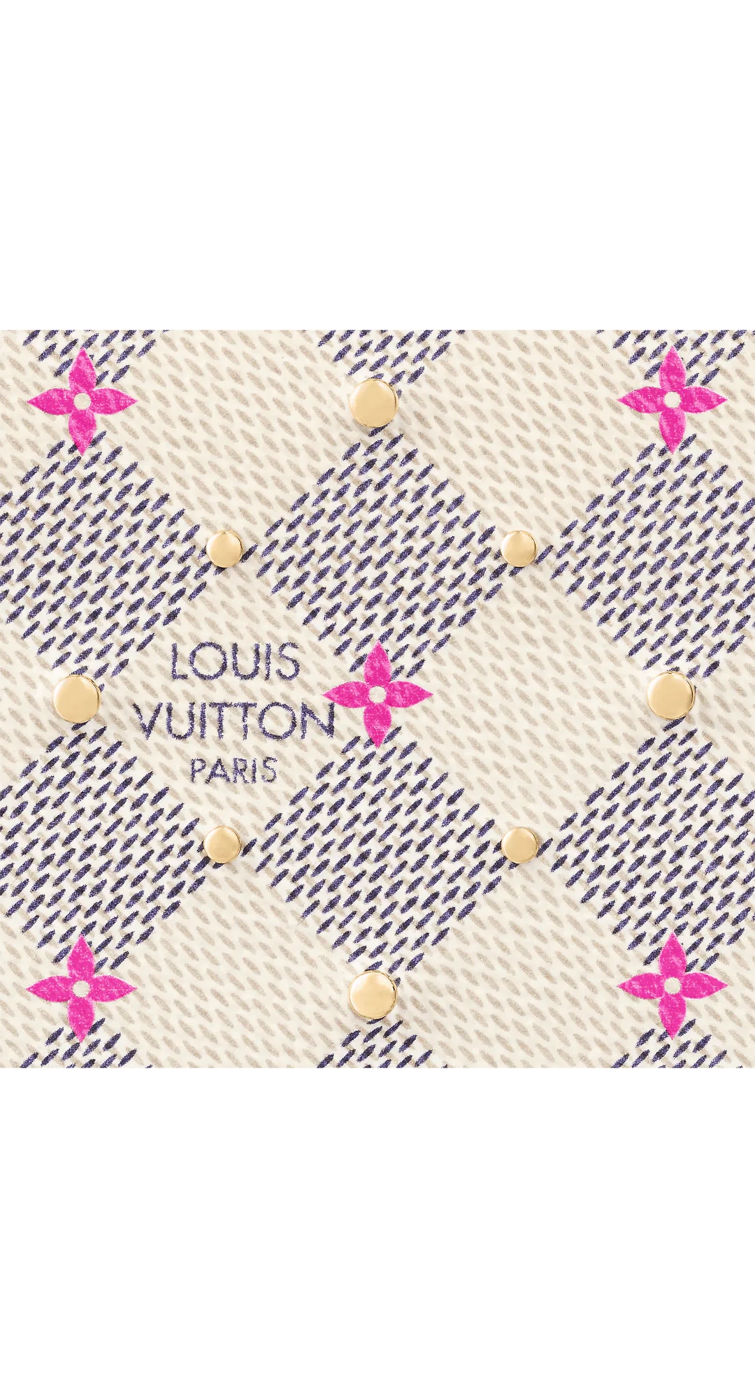 “Zippy Wallet” reinterpreted for the “Damie Azul Studs” collection. Damie Azul canvas with fuchsia pink floral motif print and small gold-coloured studs. The contrasting pink lining that emerges when you open the reassuring round zipper and the interior with multiple compartments, pockets and card slots are also attractive.