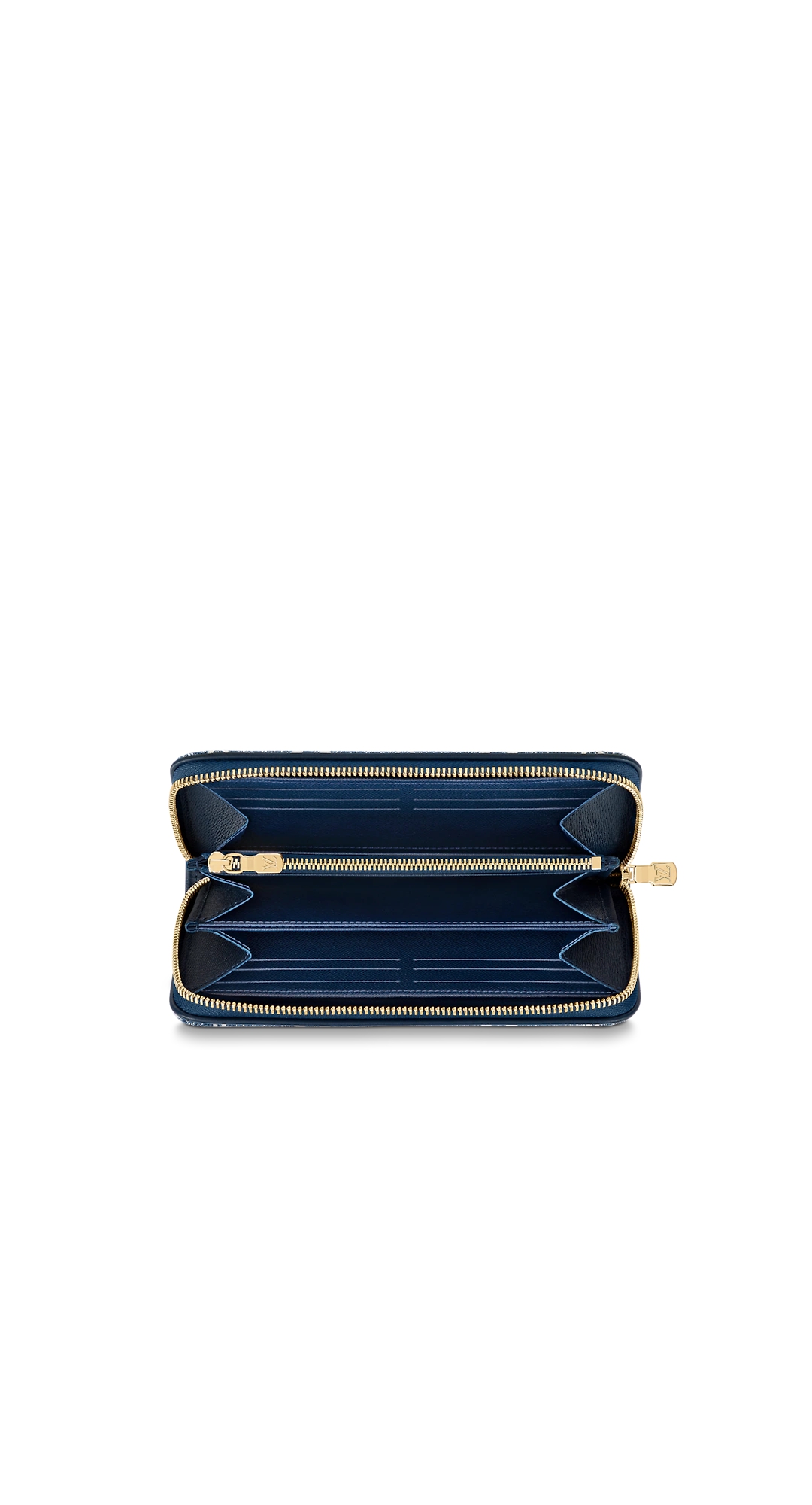 The Zippy Wallet is made of monogrammed jacquard denim – a textile that expresses Louis Vuitton’s signature monogram pattern with a stonewash-like texture. Cowhide leather trimmings complete the iconic design with round zipper closure, as the name suggests. The interior is also attractive with three large compartments, multiple pockets and 12 card slots.